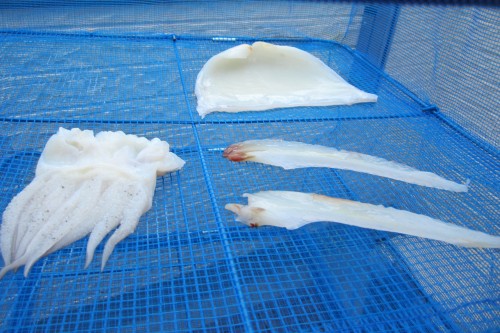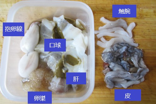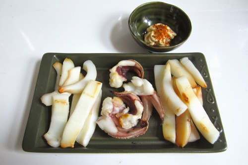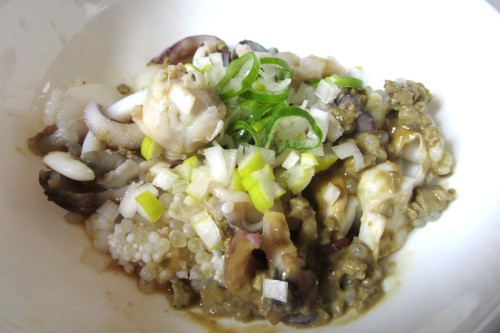 コウイカが安かったので2杯買ってきました。店頭に出ていてずっと気になっていたのですが、捌くのが面倒なので見送っていたのです。 春は産卵期で、コウイカが沿岸に近づいてくるので漁獲量が増え流通量も増えます。産卵期のものは型も味も良く値段も下がっているので、捌く手間はありますが、この季節に食したいものの一つです。 コウイカはスミイカとも呼ばれるように墨袋に大量のスミが入っています。墨袋を破いてしまうとスミだらけになってしまうので、捌くのはまな板の上ではなく、シンクの中で行っています。スミはイカスミパスタでも使われるようにコクと旨味があります。今回はイカスミと肝を使ってイカの炒め物を作りました。 ニンニクを香りが出るまで弱火で炒め、そこに肝を入れ火を通し、さらにスミを入れ、焦げ付かないように酒を少し入れてソースを作ります。そこに、格子状に切り目を入れた身を短冊に切ったものと、食べやすい大きさに切ったゲソを入れて炒め合わせて出来上がりです。味見して塩気が少ないようであれば塩を少々降ります。 食べた感じは肝とスミの旨味がイカの身に絡んでとても美味しかったです。コウイカの身は火を通しても柔らかいので食べやすいですね。また体格に比較し、スルメイカほど肝は大きくないので、肝を全部使っても生臭みは感じられず、スミと肝の配分が丁度良い具合でした。 もう1杯のコウイカは干してみることにしました。イカを干すのは初めてなのでちょっと楽しみです。 捌いた身とゲソを塩水に浸けて干すのは、魚の干物と同じですね。イカは塩がはいりやすいそうなので、漬ける時間は魚より短めにしました。それを表面の水気をさっと拭き取り、干し網に並べて程よく水分が抜ければ完成です。少し柔らかめぐらいが良いと思うのですが、身が厚いためなのか、1日干してもまだ水分量が多い感じで、2日目も干しています。現在進行中なので、食べた感想などは次回にお伝えしたいと思います。 ![]() ![]() さて、酒の肴です。コウイカを捌くと墨袋や肝以外に、口球や卵巣、皮などが出てきますが、それらも火を通せば美味しく食せます。口球はトンビと呼ばれていて、割ると中に硬い殻があるので、それを取り除いて使います。皮は火が通ると硬くなるので、小さめに刻んで使います。 墨袋は使いませんが、簡単なのは、さっと塩ゆでしてポン酢をかけたものです。部位によって味や歯ごたえが異なっていて面白いですよ。卵はプチプチして弾力があり、白子のような抱卵線は餅にも似たモチモチした食感があります。抱卵線とは卵一つ一つを包むゼリーを作る器官です。口球は引き締まった肉質の弾力のある歯応えがあります。皮は薄くても嚙み切れないほどの弾力があるのですが、それが面白いです。小さく刻んでいるので飲み込めますが、大きいままでは皮を飲み込むのは大変だと思います。 食感の違いを楽しみながらお酒を呑めるのは、自分で捌いた特権ですね(笑)。