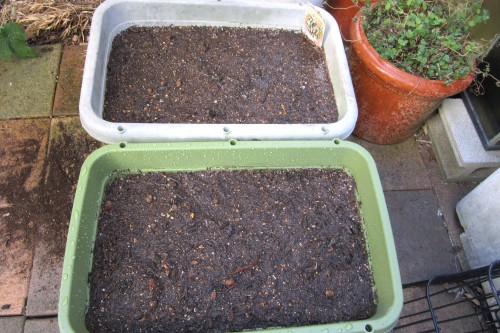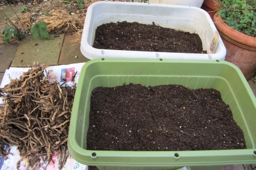 早めではありますが、ミョウガの植替えをしました。 昨年は大き目のプランターと鉢で栽培していたのですが、鉢の方は表面積が小さいことで、地下茎が混んであまり収穫できませんでした。それなので、今年はプランター2つ体制にすることにしました。 まずはミョウガの地下茎を掘り起こします。容器一杯に広がっているようで、掘り起こすには結構な力が必要でした。特に鉢植えの方は詰まっていて、これではミョウガにストレスがあったのが容易に想像できます。収穫が少なかったのも納得ですね。掘り起こしてみると地下茎は結構な量になりました。 ![]() 次に土の改良をします。1年間ミョウガを育ててきたので、かなり土が瘦せてしまっているからです。園芸用に売っている土に入れ替えるのが手っ取り早いのですが、古い土を再利用したいので再生材を利用することにしました。 古土を盛り返しながら気になった根や小石をざっと取り除きました。土をふるいにかけてしっかり取り除いた方が良いのですが、不精な私はいい加減で気にしません。しかし、コガネムシの幼虫が出てきたので、それだけは残さないように取り除きました。 取り出した幼虫はやってくる野鳥のエサとして小さめの皿にいれて庭に置いてみたのですが、ヒヨドリさえ食べず、干からびてしまいました。良質なタンパク質ではあるのですが、さすがに食べたことのないものは警戒して食べないですね(笑)。 余談ですが、植えていたブロッコリーの葉をヒヨドリが食べているようです。気付いた時にはかなり食べられていて、上部の柔らかい葉はほぼ軸だけになっていました。 話を戻しますが、その後不要物を取り除いた古土に再生材と腐葉土を加えて混ぜ合わせ、そこに水を撒いて1週間ほど置きました。 その間、ミョウガの地下茎が乾燥しないように袋に入れて冷暗所に保管しました。 1週間後、15cm程度に切取った太目の地下茎をプランターに並べ、その上に腐葉土を混ぜた土を5cmほどのせて作業終了です。 気温が低く土中の微生物の活性も低いので土の醸成は十分ではないように思いますが、ミョウガも休眠状態なので春までには十分間に合うと思います。 地下茎は捨ててしまう量の方が多くなってしまいましたが、プランターと言う限られた領域なので仕方ないですね。収穫はまだまだ先ですが楽しみです。 ![]() |