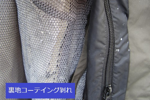 古いマウンテンパーカーを着てみたところ、内側に着ていたフリースに白い粉がたくさん付いてしまいました。パーカーを点検してみると、背中部分は問題なかったのですが、脇や腕周りの裏地が剝れて白い粉になっているのが分かりました。 この白い粉は一体何なのだろうと調べてみると、それはポリウレタン樹脂の防水・透湿コーティングが加水分解により劣化・剥離したものだと分かりました。このコーティングは保管状態にもよりますが、製造から3年~5年ほどで劣化して剥がれ落ちてくるそうです。 私のパーカーは買ってからかなり経過しているので既に元は取っていると思いますが、それでも外見上は問題なく、まだまだ着られそうに見えるので、何とかならないものかと対処法を調べてみました。 ![]() 調べてみると同じことを考える人は多くいるようで、重曹水に浸け置きしてこすり落とす方法があり、これは、重曹のアルカリ性を利用して、酸性化して劣化したポリウレタンコーティングを中和・分解し、強制的に洗い流すと言った作業です。 動画や写真付きでやり方を掲載しているサイトなどもあり、それを参考に、廃棄するのであればどうせダメモトでやってみようと思いました。 結果から言いますと、こすり落とす作業はとてつもなく根気が必要で、しかも劣化していない部分は剝れないことが分かりました。剝れていない部分は今後劣化して剝れてくると考えると、この作業自体あまり効果的ではないと判断し、作業を途中で止めることにしました。念のため言って置きますが、この方法が有効では無いと言う訳ではなく、全体的にコーティングが劣化していないと、この方法での対処は難しいと言うことですね。 そのようなことで、パーカーは結局廃棄することにしました。破れなどの損傷やひどい汚れの付着がなかったので、廃棄するのは何だか残念に思いました。 ここで言いますが、ポリウレタン樹脂のコーティングによるメリットは沢山あります。なので、それが悪いとは思いません。ただ衣類や道具など、気に入っている物を長く使っていると愛着が出てくるものですよね。 ![]() |